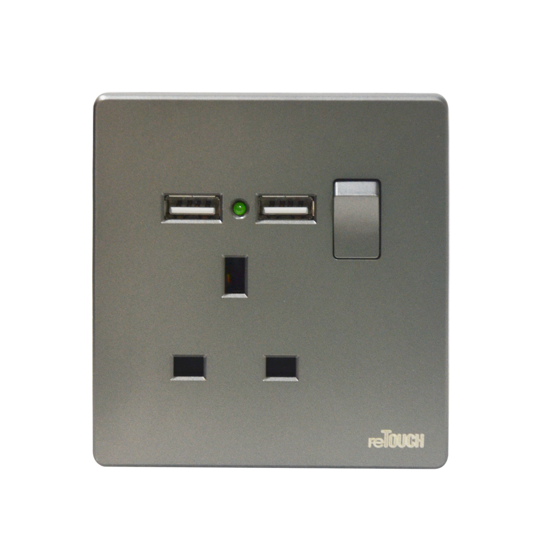 RETOUCH M0813USB 13A ULTRA RIMLESS FLAT PIN SWITCH SOCKET C/W 2 USB OUTLET (2.1MAH)